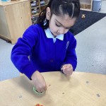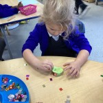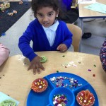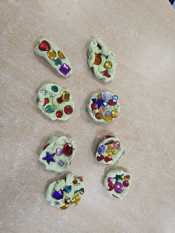 At Focus group time the children had the opportunity to make Diva lamps from salt dough and using their fine motor skills to decorate the models with gems and sequins.