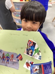 The children made their own shop fronts from pieces of cards and pictures.