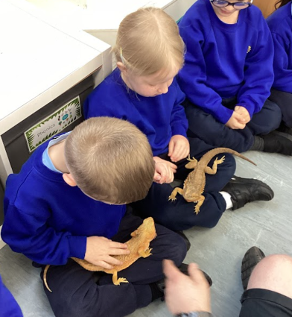 The children were very excited to meet all the animals. They were able to hold and stroke the bearded dragon which some of the children described the spikes as being soft.